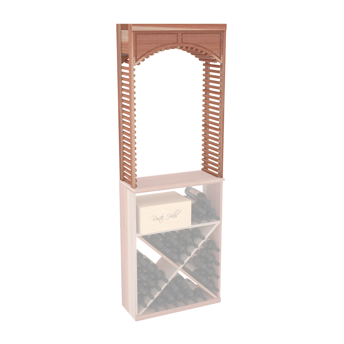 Add a decorative touch to your wine storage systems with the InstaCellar™ 26" Cellar Arch. Customize your decorative wine storage effortlessly with a selection of 4 wood species and 6 WineSafe™ stain options to match your style perfectly. Handmade in North Salt Lake, UT.