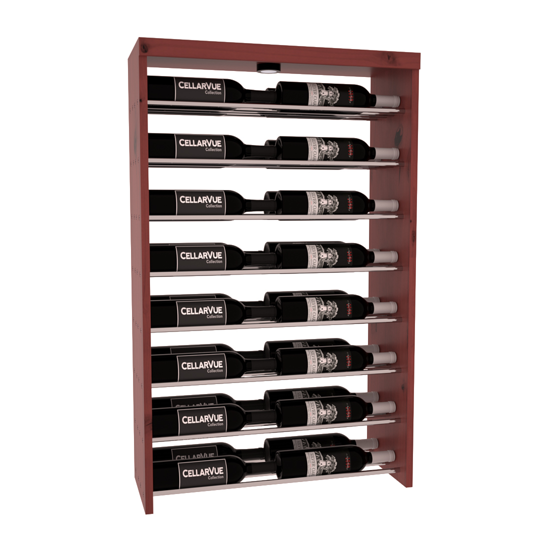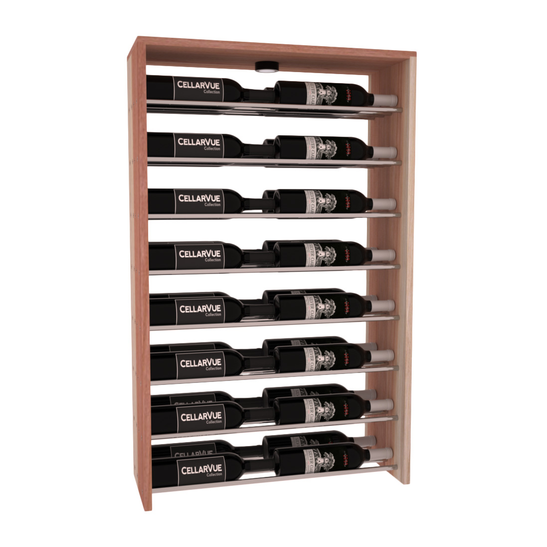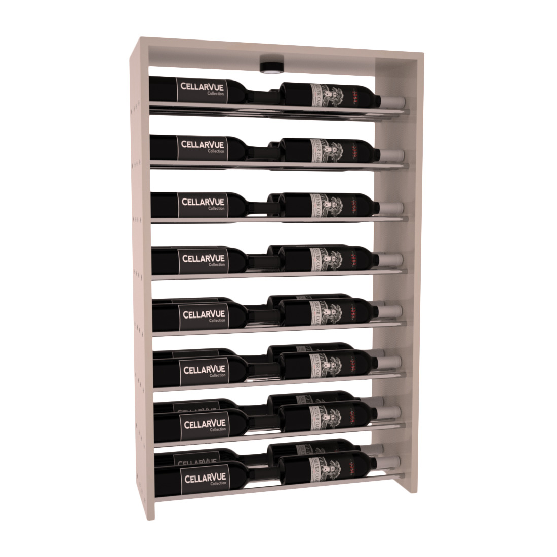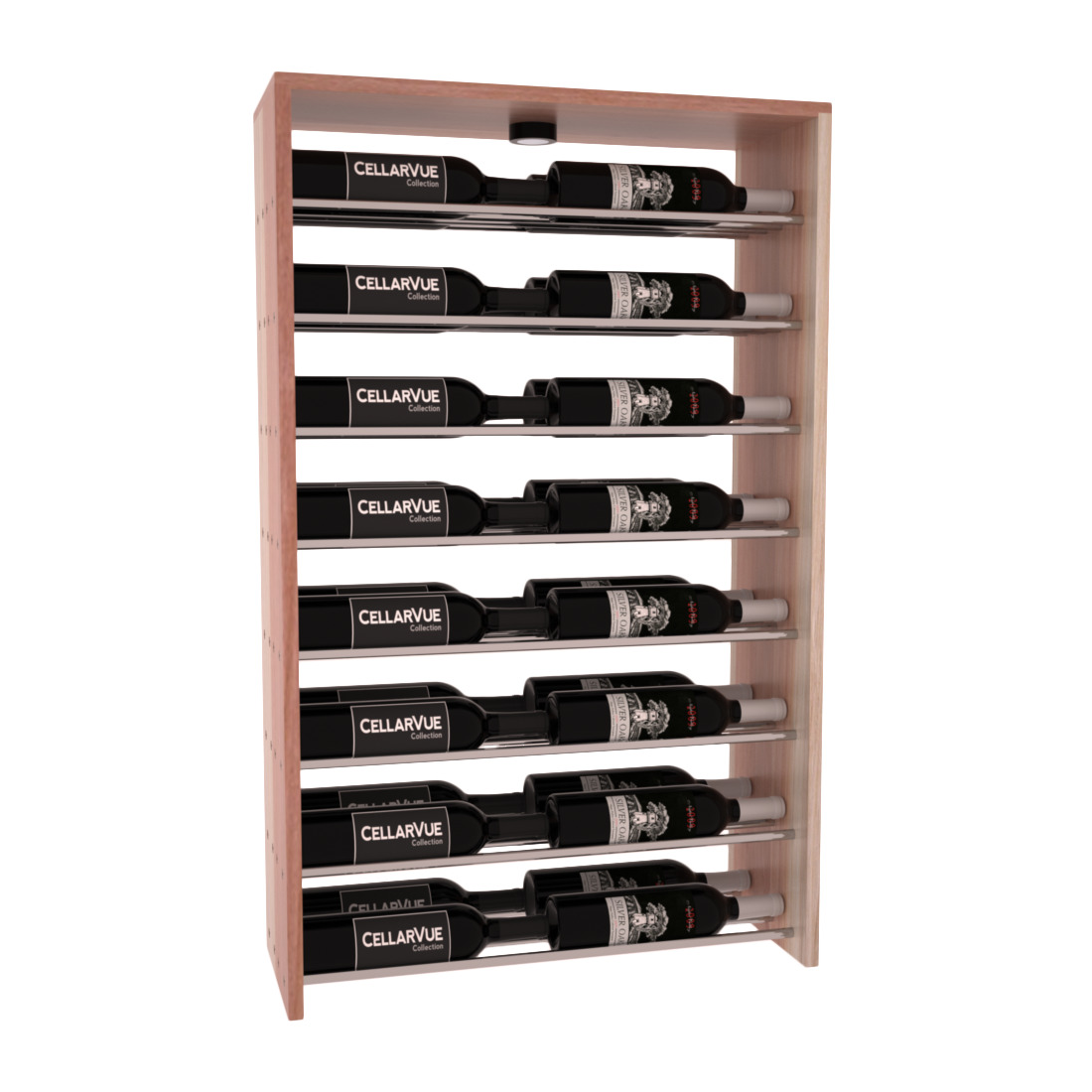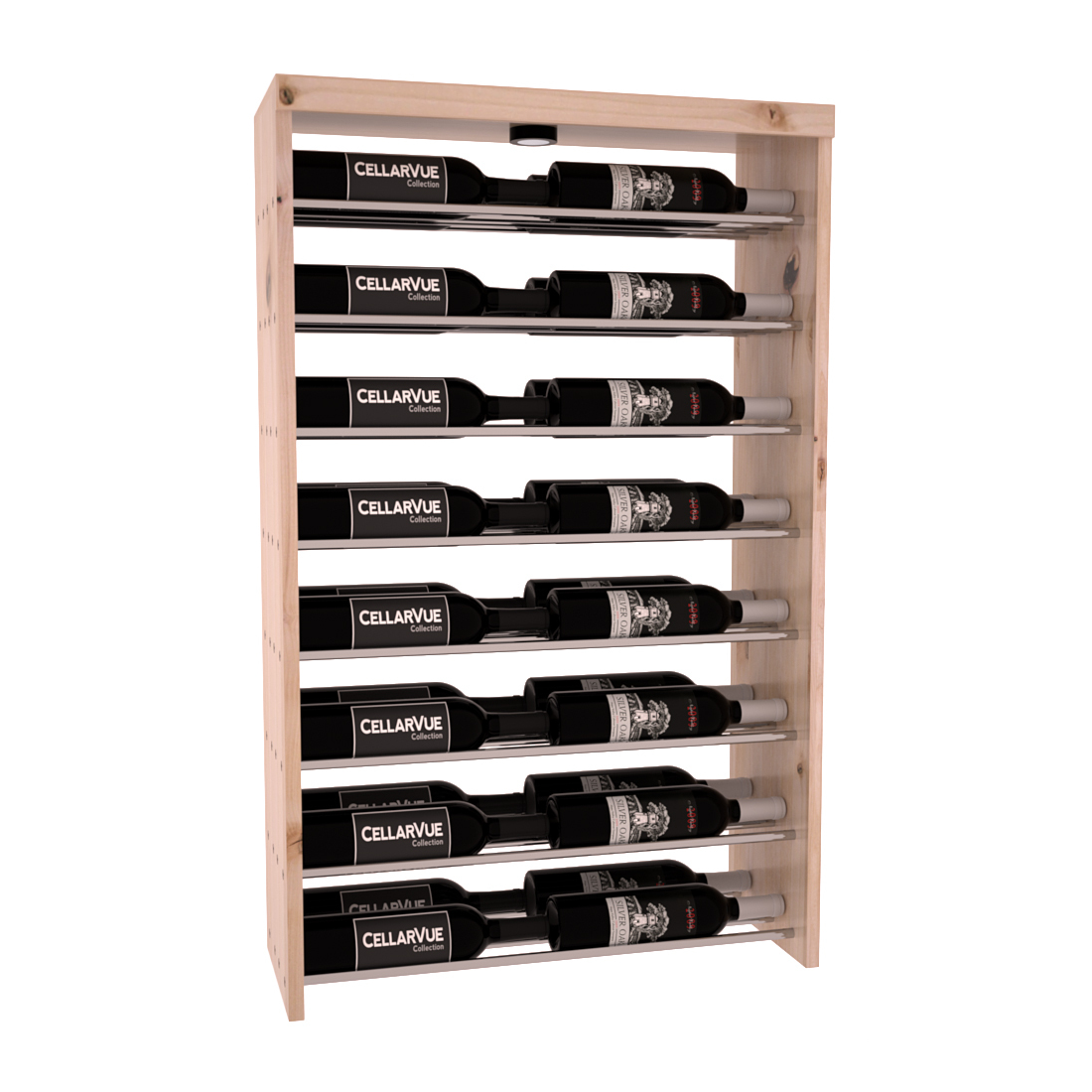 The InstaCellar™ 26" Horizontal Double Deep Top Display provides a unique way to display your wine collection & highlight your favorite labels in your wine cellar. Available in 3 different metal finishes silver, matte black, & gunmetal. This Horizontal Double Deep Top showcases twice the number of wine labels, allowing you to fully enjoy the beauty of your collection as it ages to perfection. Mix & match this rack with any InstaCellar™ base display to create a custom wine storage system that best fits your space. Easily customize with a selection of 4 wood species and 6 WineSafe™ stain options to match your style perfectly. Choose a WineSafe™ Satin finish to enhance the beauty and durability of your wine storage solution. Handmade in North Salt Lake, UT.