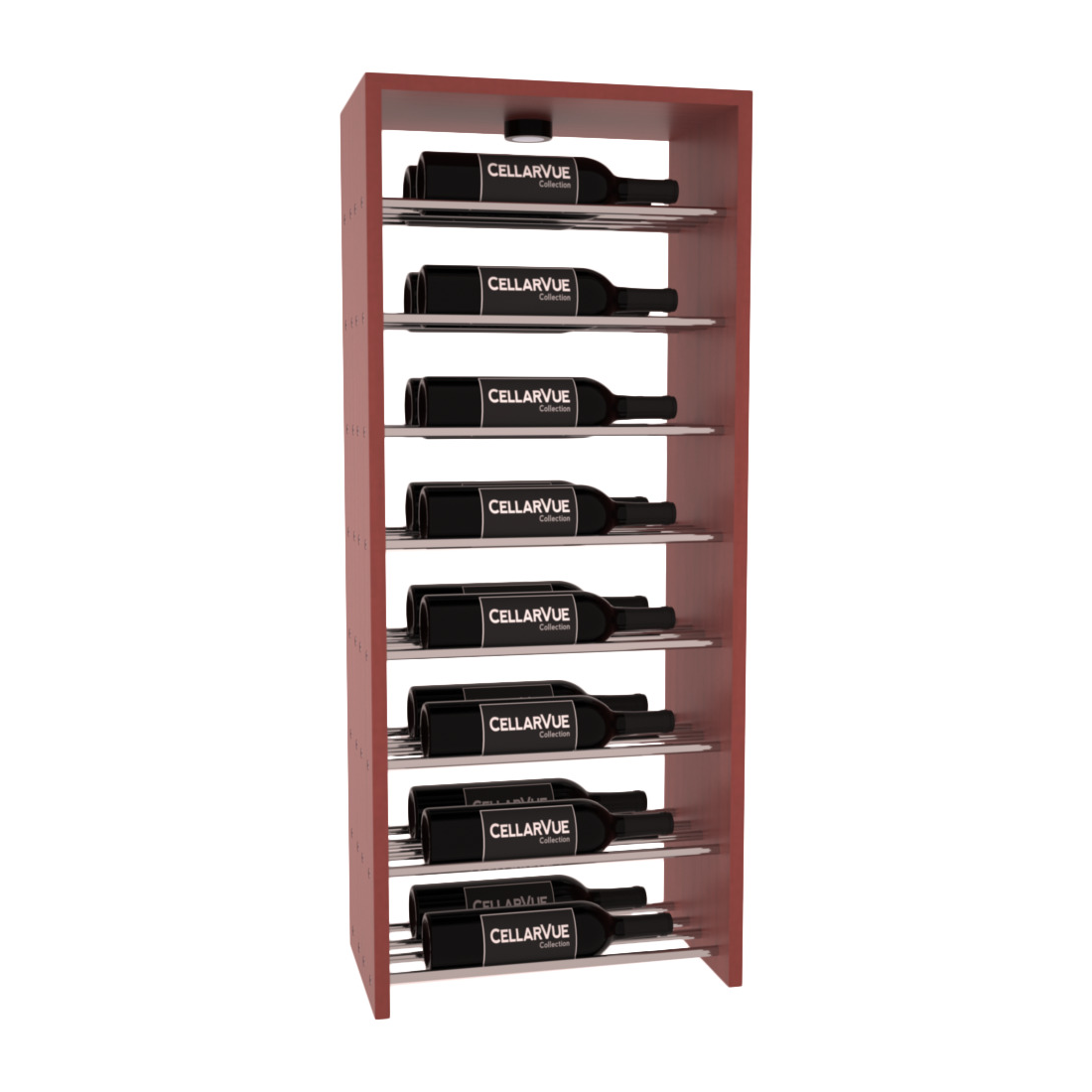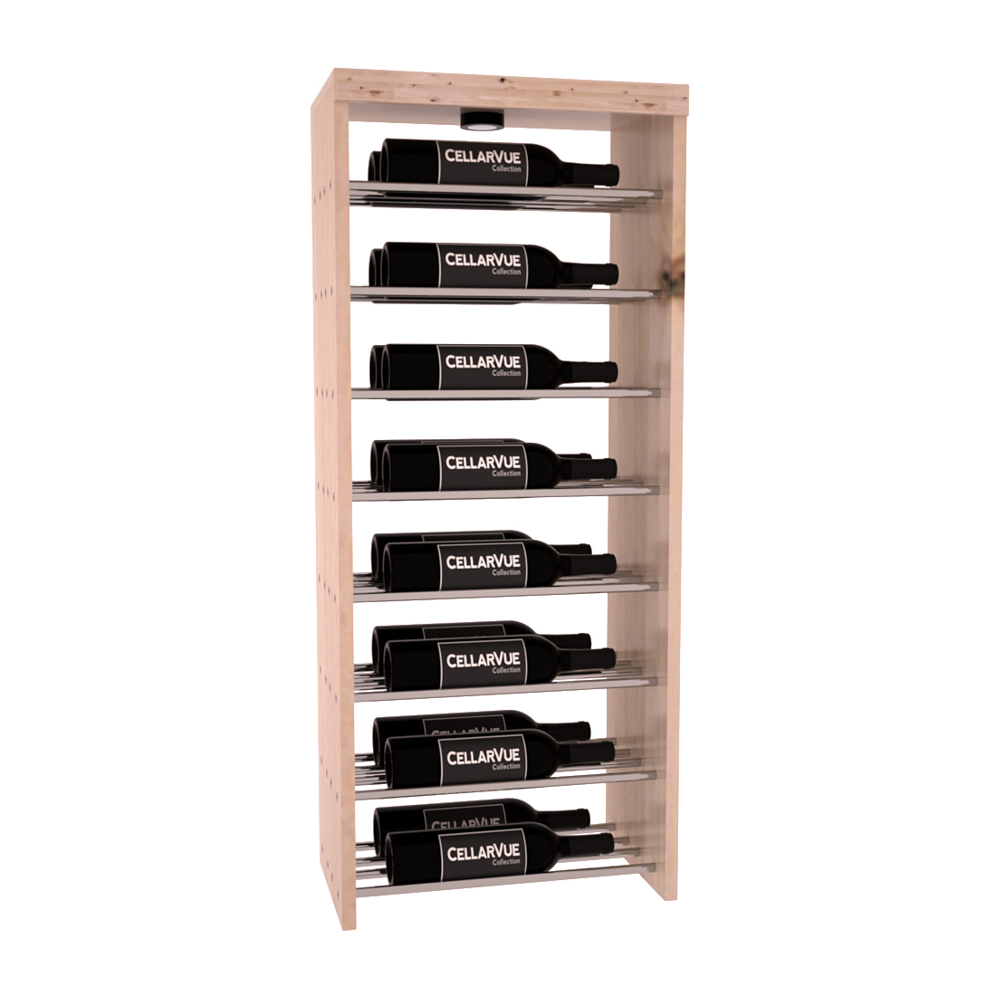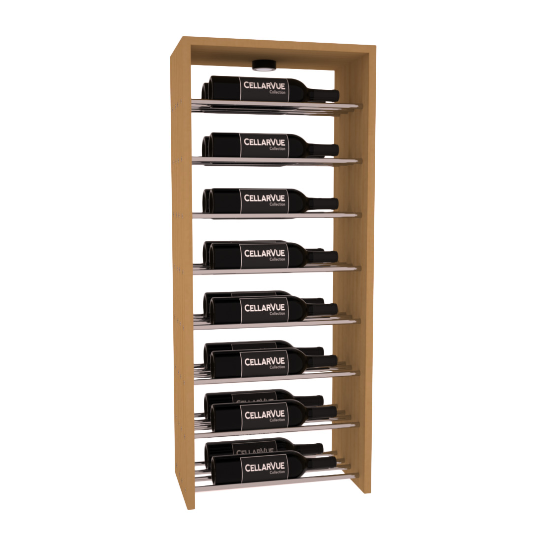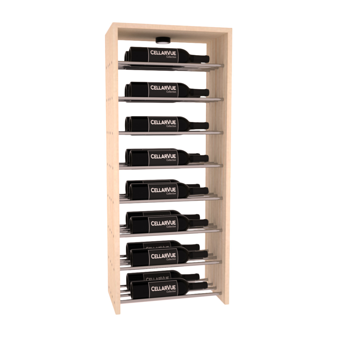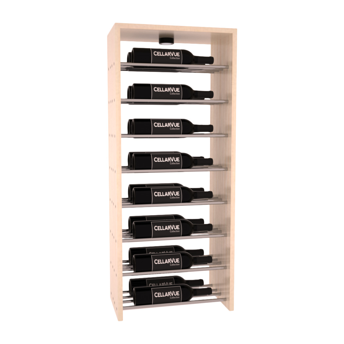 The InstaCellar™ 17.5" Horizontal Double Deep Top Display provide a unique way to display your wine collection & highlight your favorite labels in your wine cellar. Now available in three different metal finishes to best match your interior asthetic; silver, matte black, & gunmetal. This Horizontal Double Deep Top showcases twice the number of wine labels, allowing you to fully enjoy the visual beauty of your collection as it ages to perfection. Mix & match this rack with any InstaCellar™ base display to create a custom wine storage system that best fits your space. Easily customize with a selection of 4 wood species and 6 WineSafe™ stain options to match your style perfectly. Choose a WineSafe™ Satin finish to enhance the beauty and durability of your wine storage solution. Handmade in North Salt Lake, UT.