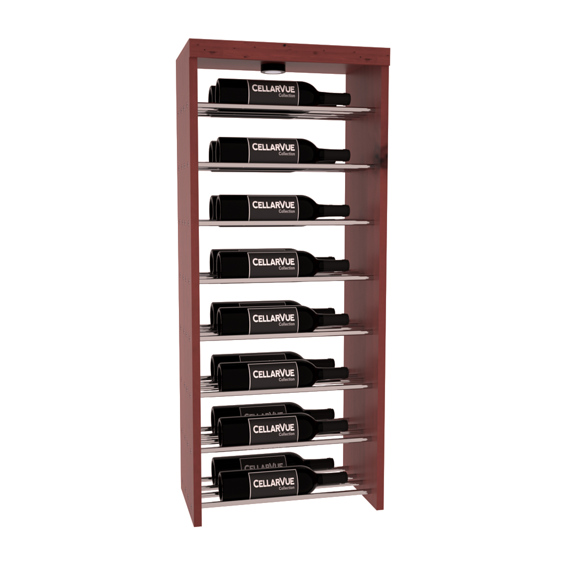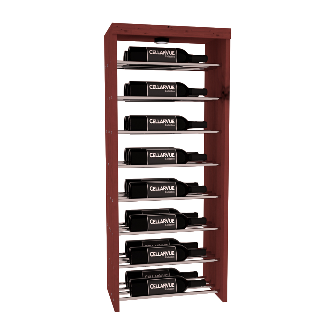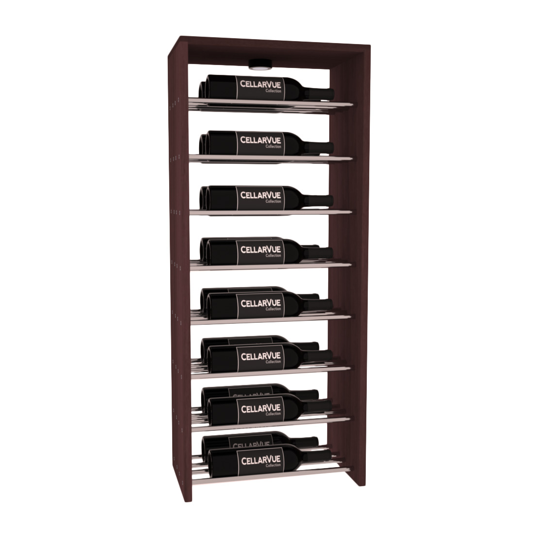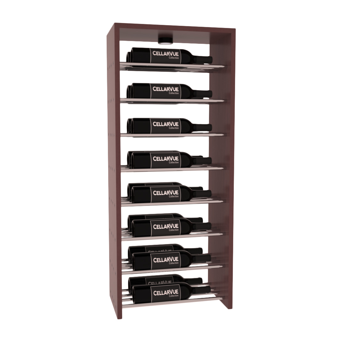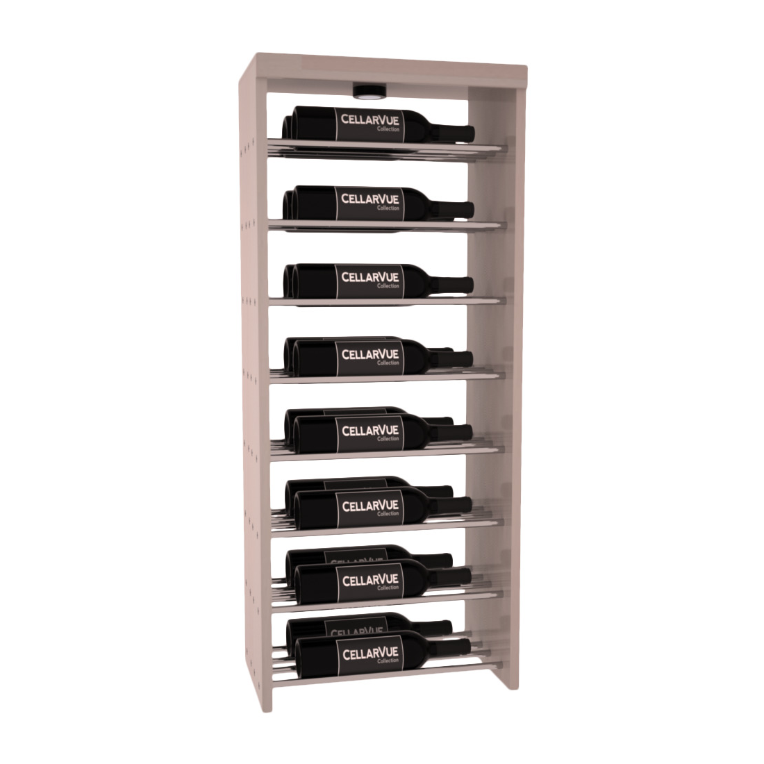 The InstaCellar™ 17.5" Horizontal Double Deep Top Display provide a unique way to display your wine collection & highlight your favorite labels in your wine cellar. Now available in three different metal finishes to best match your interior asthetic; silver, matte black, & gunmetal. This Horizontal Double Deep Top showcases twice the number of wine labels, allowing you to fully enjoy the visual beauty of your collection as it ages to perfection. Mix & match this rack with any InstaCellar™ base display to create a custom wine storage system that best fits your space. Easily customize with a selection of 4 wood species and 6 WineSafe™ stain options to match your style perfectly. Choose a WineSafe™ Satin finish to enhance the beauty and durability of your wine storage solution. Handmade in North Salt Lake, UT.