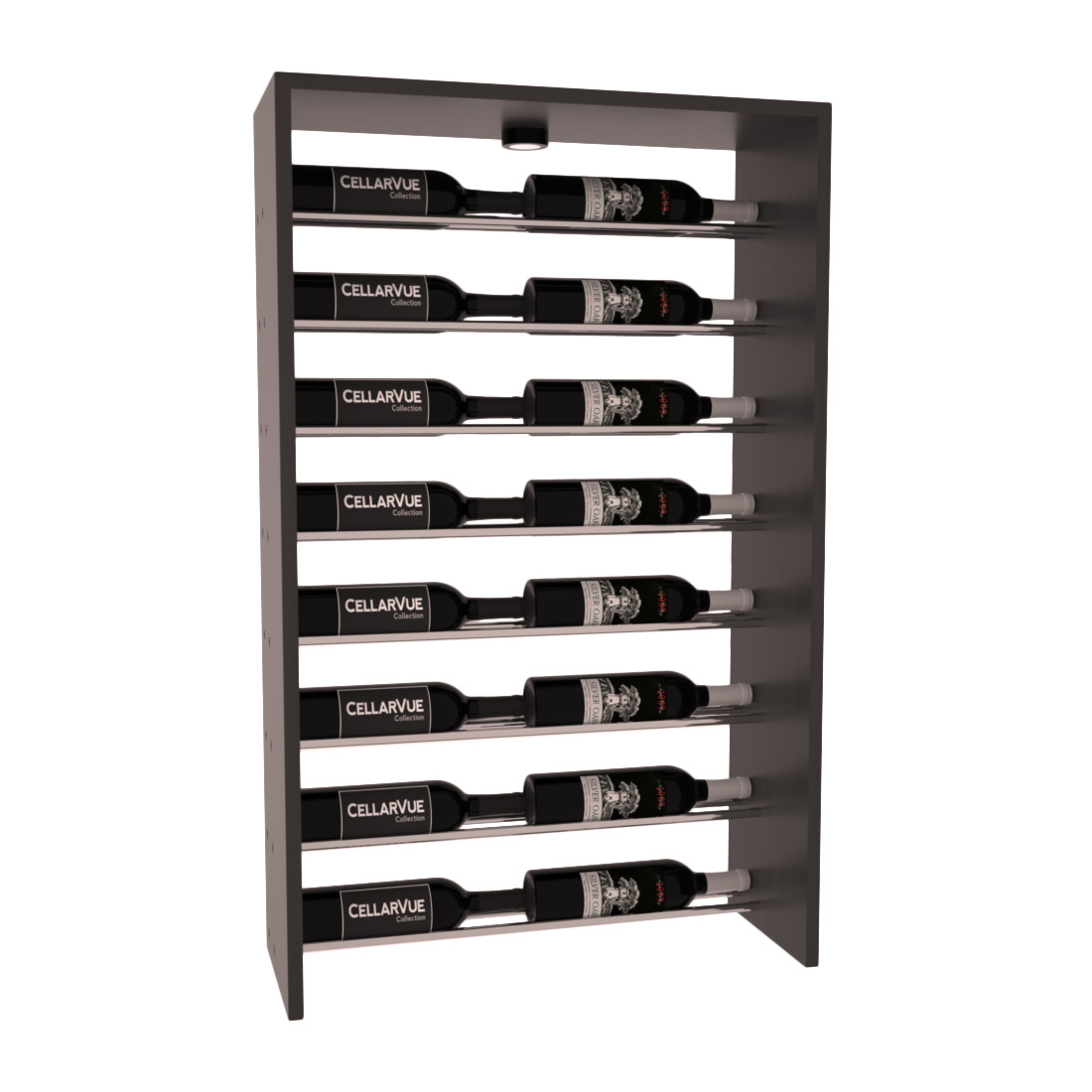 InstaCellar™ Horizontal Top Display cabinets provide a unique way to display your wine collection & highlight your favorite labels in your wine cellar. Now available in three different metal finishes to best match your interior asthetic; silver, matte black, & gunmetal. This top horizontal displays wine labels forward for maximum visual enjoyment as your collection ages to perfection. Mix & match this rack with any InstaCellar™ 26″ base display to create a custom wine storage system that best fits your space. Made in the USA.
