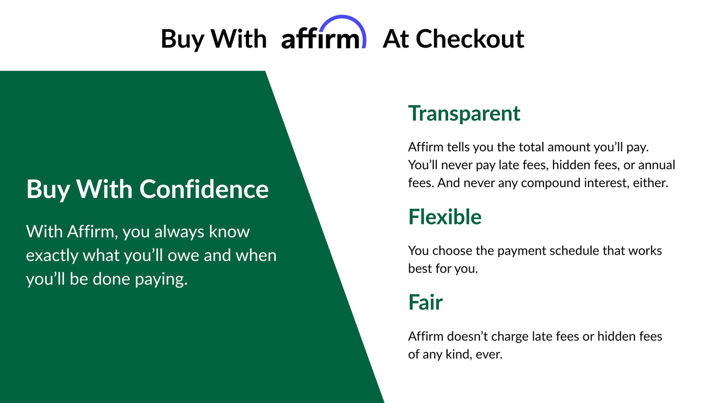 Rates from 0–36% APR. Payment options through Affirm are subject to an