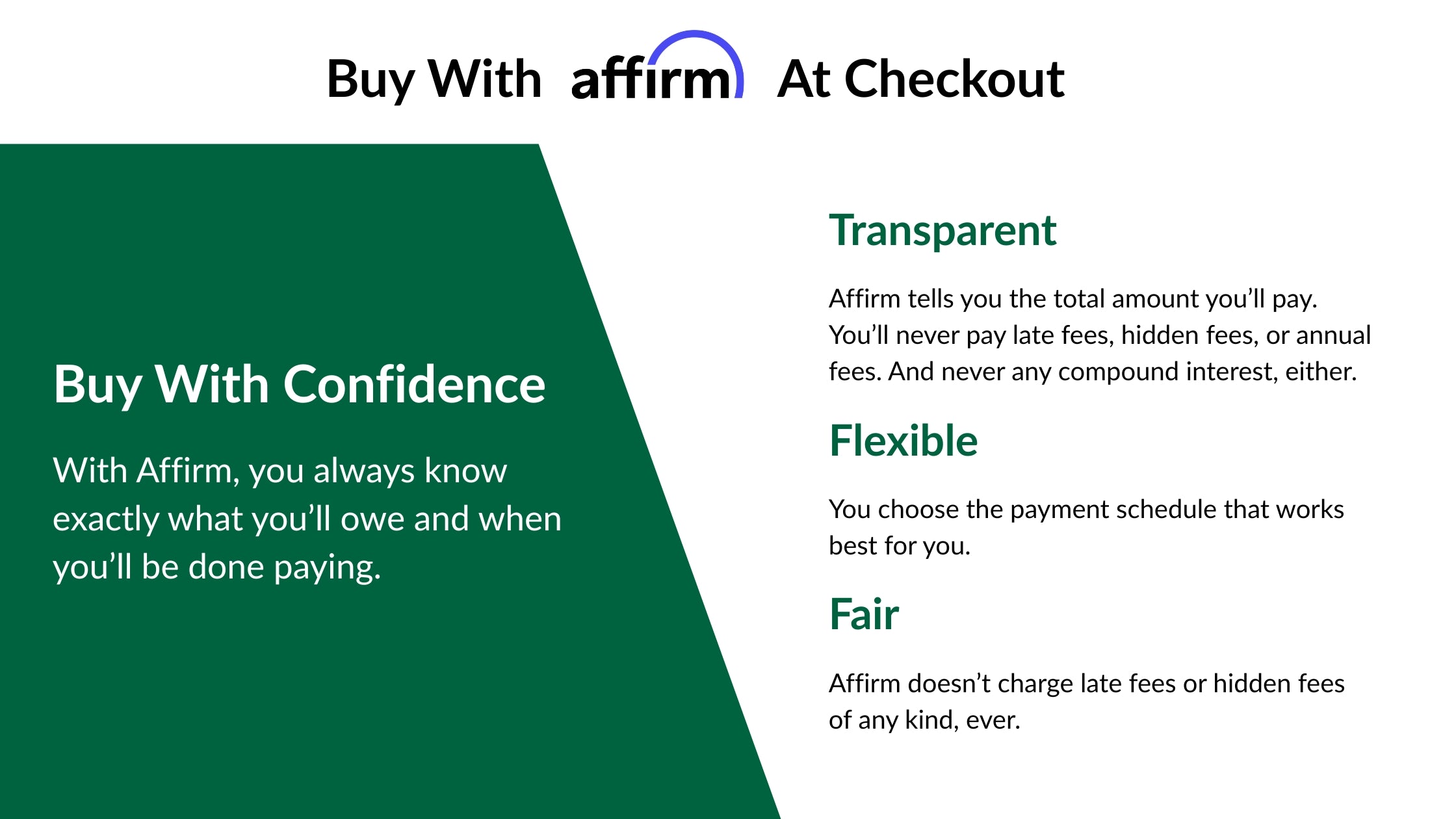 When inspiration strikes, Affirm gives you payment options to suit your budget. Just select Affirm at checkout to pay over time for your purchase, starting at 0% APR.